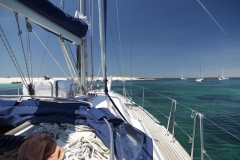 Leaving Sainte Marine and heading even further from home, we detoured via the Île de Glénan for a lunch stop and swim. These islands lie some 10 miles offshore and are just about visible from the mainland. We were drawn here as they are locally referred to as the ‘Breton Tahiti’ and described ‘as close in appearance to the Caribbean without actually being there’! These 20 or so islands with white sandy beaches are surrounded by turquoise sea and are mostly uninhabited apart from a sailing school which has been resident since 1947.