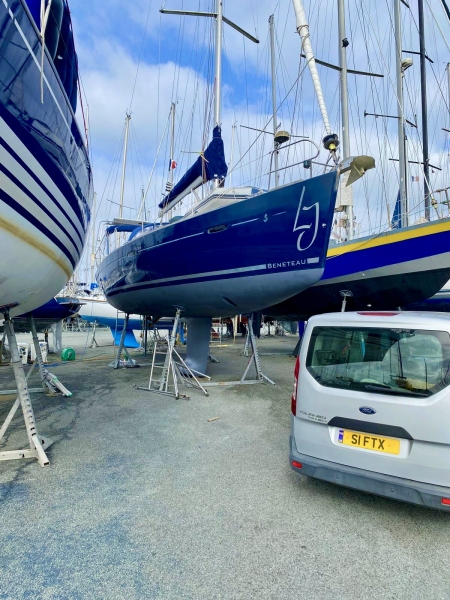 Stuart ‘Billy no mates’ returned to LJ all by himself, because Nina decided she important things to do at home, with a mountain to climb; the polishing of 86 feet of blue gel coat. The second problem was having to live in the boat, in a cradle with no running water and no useable toilet.
