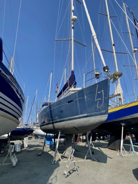 8 days later Nina flew into Nantes and joined me on the boat which was still in the cradle, up a ladder with no running water and other aforementioned facilities. Being the gentleman that I am I even gave her the new bucket, the big one.